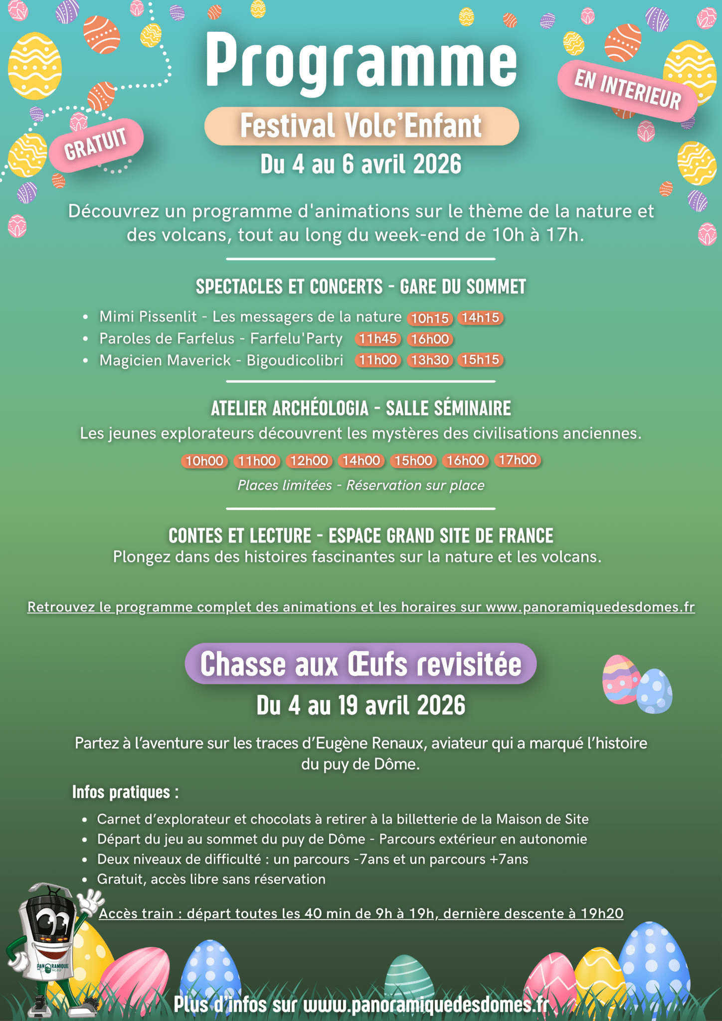 Du 4 au 6 avril 2026, le Panoramique des Dômes lance la première édition du Festival Volc’Enfant, un rendez-vous 100 % dédié aux familles !